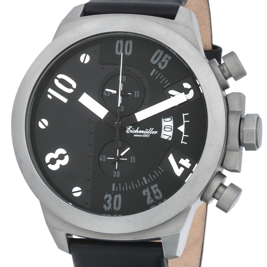 This 45mm stainless steel pilot's chronograph combines precision and functionality with a Miyota OS 11 quartz movement. Equipped with a durable mineral crystal and a leather strap, it offers durability and comfort. Its 3 ATM water resistance protects against everyday splashes, while the three-hand, chronograph, and date functions at 3 o'clock facilitate detailed timekeeping with professional style.